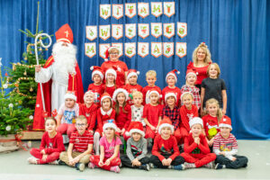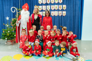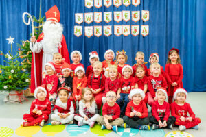 Dzisiejszy dzień był pełen radości i świątecznej magii, ponieważ nasze przedszkole odwiedził wyjątkowy gość – Święty Mikołaj! Dzieci z ogromnym przejęciem i uśmiechami na twarzy powitały gościa, który przybył z wielkim workiem prezentów.