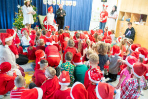 Przedszkolaki przygotowały dla Mikołaja piękne piosenki i wierszyki, które zaprezentowały z wielkim zaangażowaniem. Nie zabrakło również wesołych zagadek, na które dzieci odpowiadały z dużym entuzjazmem.